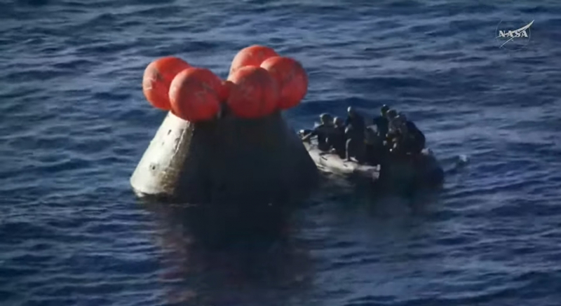 NASA cho hay, các kỹ sư sẽ tiến hành một số thử nghiệm khi Orion đang ở dưới nước. Sau khoảng một giờ nữa, họ sẽ mở khoang đáp Orion để đưa các phi hành gia ra ngoài và kéo nó lên tàu cứu hộ để đưa về bờ.