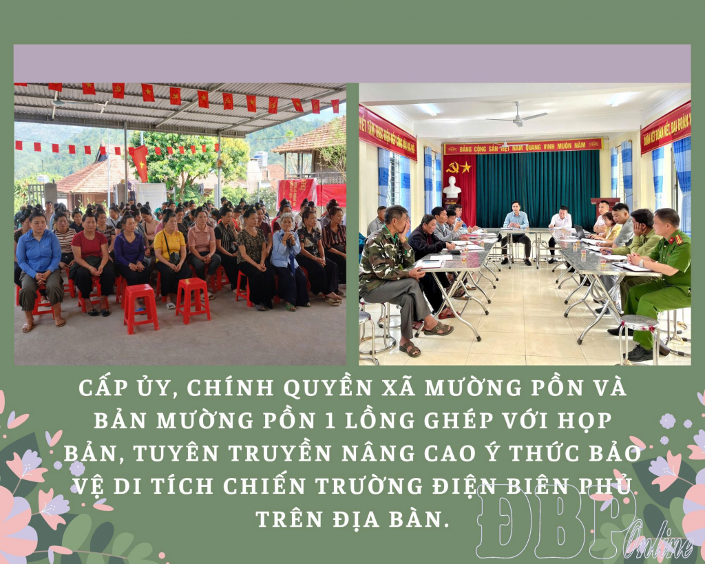 Cách phường Điện Biên Phủ gần 20km, di tích Mường Pồn (xã Mường Pồn) nằm trong quần thể di tích quốc gia đặc biệt Chiến trường Điện Biên Phủ, là nơi ghi dấu sự kiện lịch sử ngày 6/12/1953, khi anh hùng Bế Văn Đàn đã anh dũng lấy thân mình làm giá súng, tạo điều kiện cho đồng đội tấn công tiêu diệt kẻ thù. Hiện nay, ngoài trách nhiệm của cơ quan chức năng, người dân bản Mường Pồn 1 đã tự giác bảo vệ và phát huy giá trị di tích.
