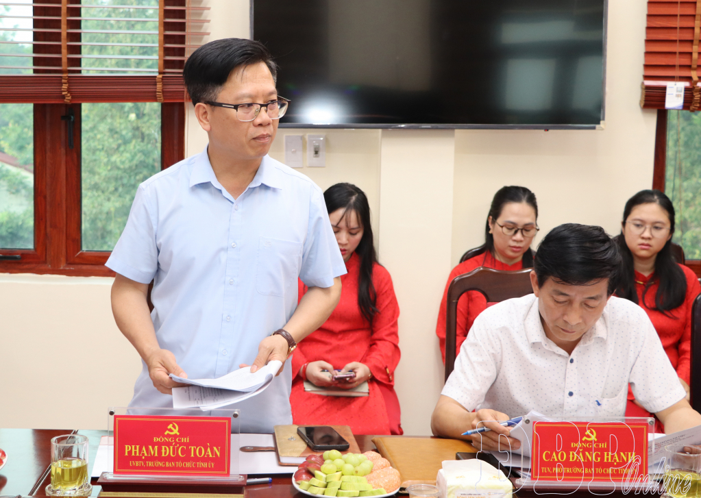 Tại buổi làm việc, các đại biểu đã tập trung thảo luận những nội dung trọng tâm: Phương án cân đối biên chế cán bộ, công chức, viên chức khối Đảng; rà soát, bố trí số lượng hợp đồng tại các xã; tăng cường phối hợp giữa Sở Nội vụ và Ban Tổ chức trong sắp xếp đơn vị hành chính, triển khai mô hình chính quyền địa phương 2 cấp, kiện toàn tổ chức bộ máy theo hướng tinh gọn, hiệu lực, hiệu quả; nâng cao hiệu quả phối hợp giữa Văn phòng Tỉnh ủy và Ban Tổ chức trong thực hiện nhiệm vụ chuyên môn; nâng cao chất lượng sinh hoạt chi bộ; tiếp tục tham mưu sắp xếp, kiện toàn bộ máy bảo đảm vận hành thông suốt, hiệu quả.