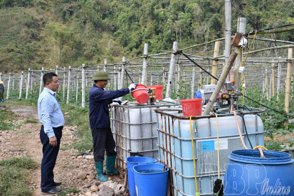 Khắc phục khó khăn về nguồn nước ở địa bàn vùng cao, gia đình anh Tình đã lắp đặt hệ thống tưới nhỏ giọt để duy trì độ ẩm cho cây trong thời điểm khan hiếm nước. Nhờ đó, lượng nước được phân bổ đều đến từng gốc, hạn chế thất thoát so với phương pháp tưới tràn trước đây, giúp cây sinh trưởng ổn định.