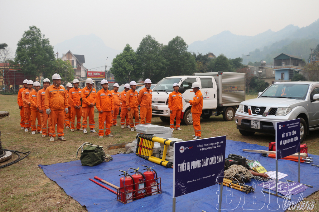 Cuộc diễn tập có sự tham gia của Ban chỉ huy PCTT và TKCN Công ty Điện lực Điện Biên, các phòng ban chuyên môn cùng lực lượng xung kích đến từ Điện lực Mường Ảng, Điện lực Điện Biên Phủ, Điện lực Thanh An, Điện lực Tuần Giáo, Xí nghiệp Lưới điện cao thế và Trung tâm Thí nghiệm điện Điện Biên. Theo lệnh điều động của Trưởng Ban chỉ huy, các đơn vị nhanh chóng phối hợp, vận chuyển vật tư, phương tiện hỗ trợ Điện lực Mường Ảng khắc phục sự cố theo phương châm "4 tại chỗ". Các bước thực hiện tại buổi diễn tập được tuân thủ nghiêm ngặt theo quy định kỹ thuật.