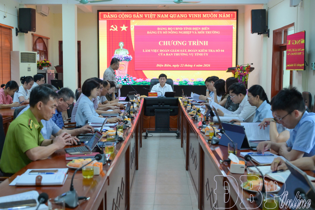 ĐBP - Ngày 22/4, Đoàn giám sát, kiểm tra số 4 của Ban Thường vụ Tỉnh ủy do Phó Bí thư Tỉnh ủy, Chủ tịch Ủy ban MTTQ Việt Nam tỉnh Mùa A Vảng làm trưởng đoàn đã có buổi làm việc với Đảng ủy Sở Nông nghiệp và Môi trường.