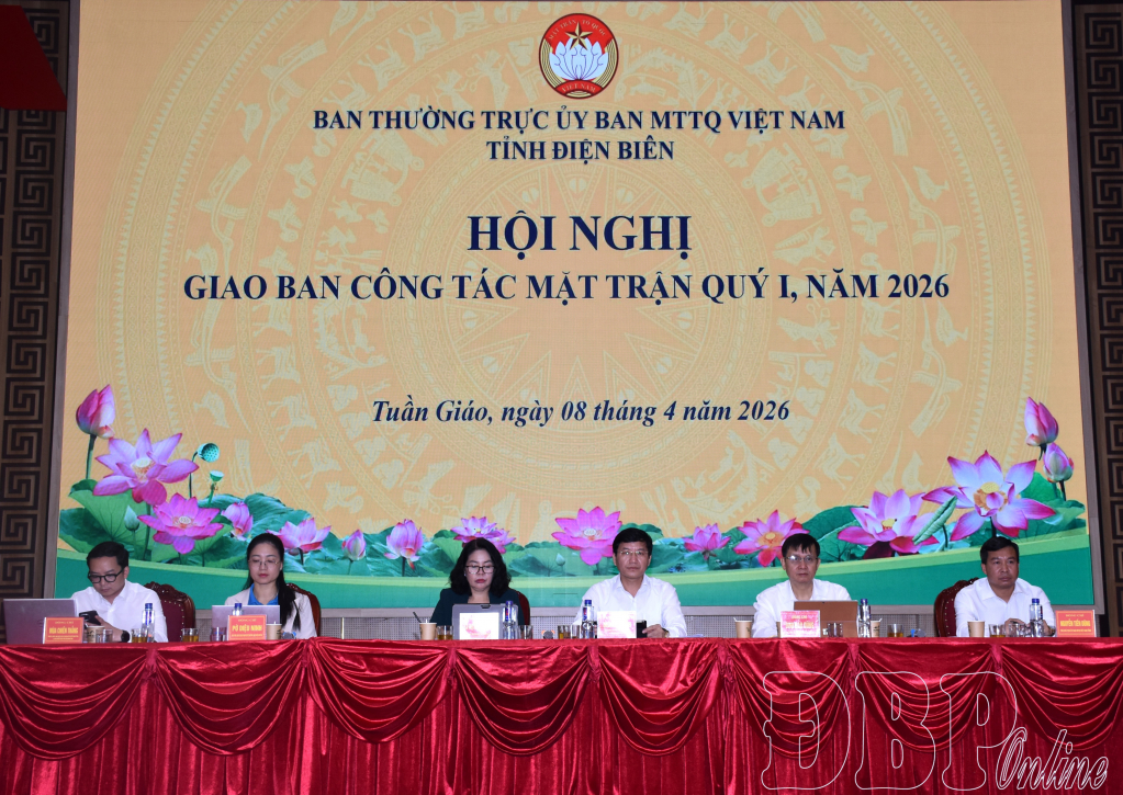 ĐBP - Sáng 8/4, tại xã Tuần Giáo, Ủy ban Mặt trận Tổ quốc (MTTQ) Việt Nam tỉnh tổ chức hội nghị giao ban công tác Mặt trận quý I, triển khai nhiệm vụ quý II năm 2026. Dự hội nghị có các đồng chí: Mùa A Vảng, Ủy viên dự khuyết Trung ương Đảng, Phó Bí thư Tỉnh ủy, Chủ tịch Ủy ban MTTQ Việt Nam tỉnh; Lò Thị Minh Phượng, Ủy viên BTV Tỉnh ủy, Phó Chủ tịch Thường trực Ủy ban MTTQ Việt Nam tỉnh.