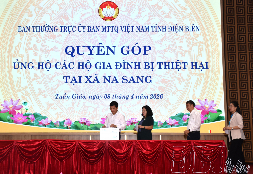Tại hội nghị, đại biểu đã quyên góp, ủng hộ các gia đình bị thiệt hại khi tham gia chữa cháy rừng trên địa bàn xã Na Sang đầu tháng 4/2026.