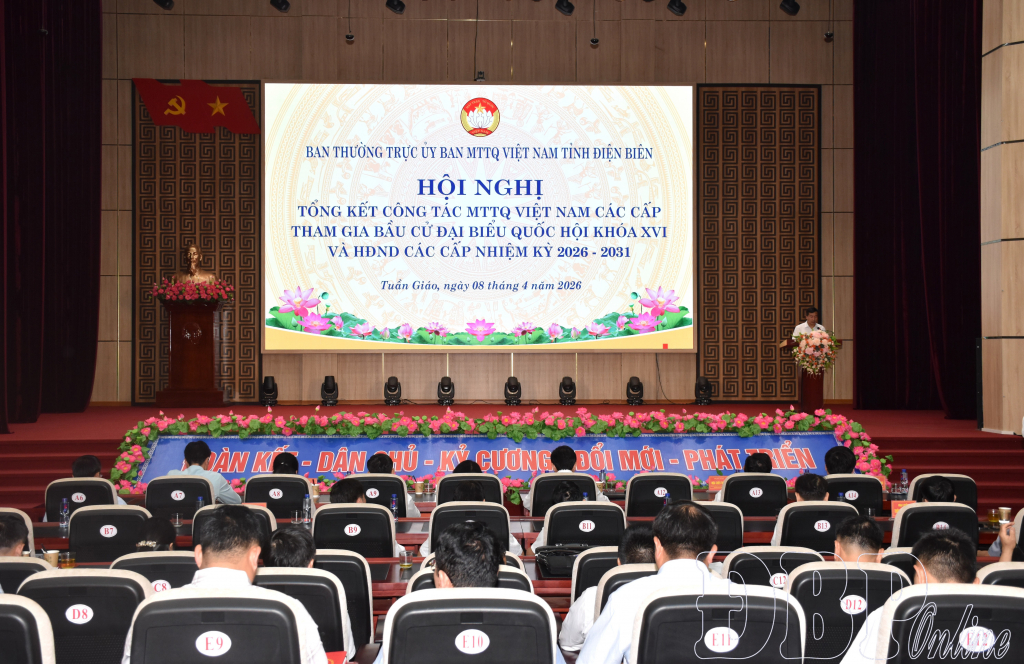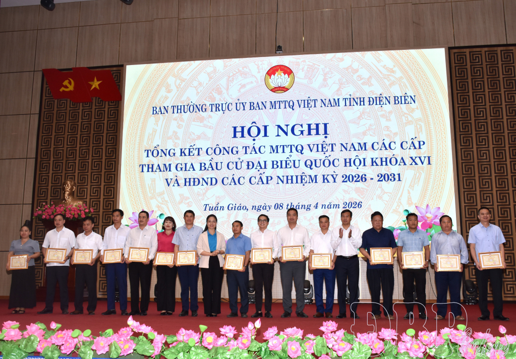 ĐBP - Sáng 8/4, Ủy ban Mặt trận Tổ quốc (MTTQ) Việt Nam tỉnh tổ chức hội nghị tổng kết công tác MTTQ tham gia cuộc bầu cử đại biểu Quốc hội khóa XVI và đại biểu HĐND các cấp nhiệm kỳ 2026 - 2031. Phó Bí thư Tỉnh ủy, Chủ tịch Ủy ban MTTQ Việt Nam tỉnh Mùa A Vảng dự và trao khen thưởng.