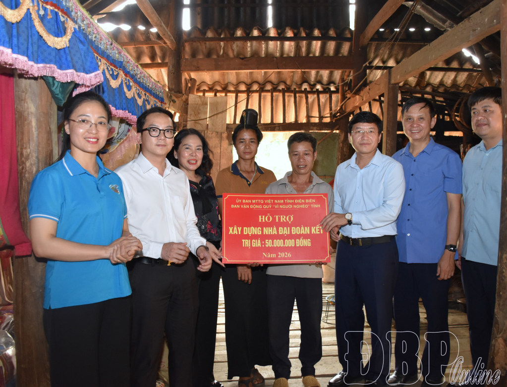 ĐBP - Từ quỹ Vì người nghèo tỉnh, chiều ngày 7/4, Phó Bí thư Tỉnh ủy, Chủ tịch Ủy ban MTTQ Việt Nam tỉnh Mùa A Vảng cùng đoàn công tác đã đến trao kinh phí hỗ trợ làm nhà đại đoàn kết cho 2 gia đình hoàn cảnh khó khăn trên địa bàn xã Tuần Giáo.