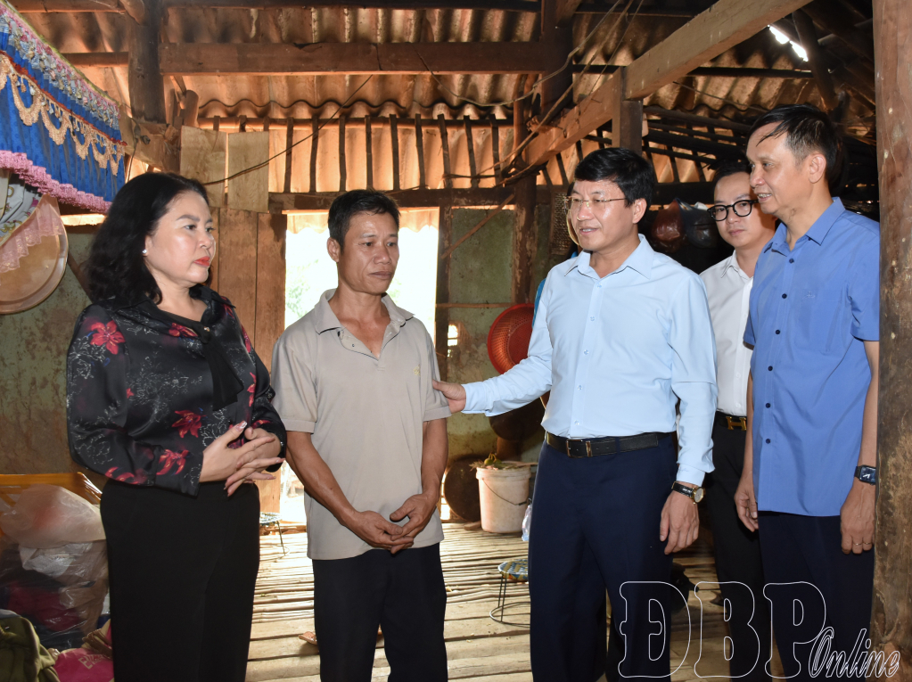 Trao hỗ trợ mỗi hộ 50 triệu đồng từ Quỹ Vì người nghèo tỉnh, Phó Bí thư Tỉnh ủy Mùa A Vảng chia sẻ những khó khăn cùng các gia đình; đồng thời mong muốn với số tiền hỗ trợ sẽ giúp các gia đình có ngôi nhà mới để ở trong dịp Tết Nguyên đán 2027.