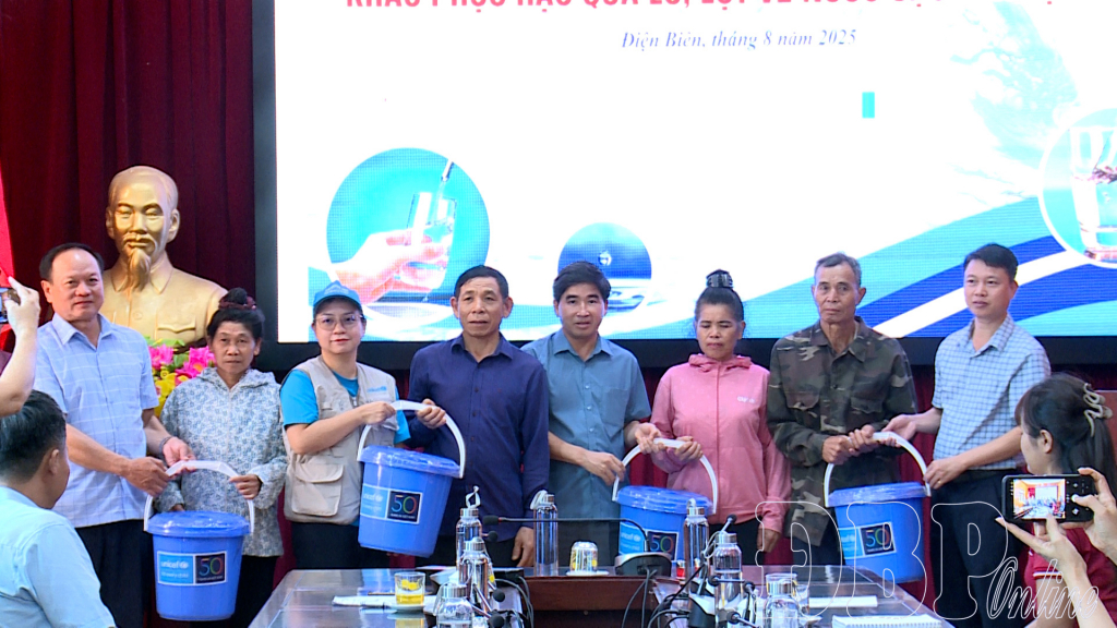 Phát biểu tại chương trình cấp phát hàng hóa, bà Nguyễn Hồng Hạnh, cán bộ chương trình nước sạch vệ sinh, Unicef Việt Nam chia sẻ với những thiệt hại, mất mát của người dân chịu ảnh hưởng bởi thiên tai; mong muốn được tiếp tục phối hợp với Bộ Nông nghiệp và Môi trường và tỉnh Điện Biên tổ chức các chương trình hỗ trợ trung hạn, dài hạn cho người dân vùng lũ.