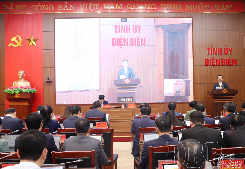 Hội nghị nghe Thường trực Tỉnh ủy trình bày dự thảo báo cáo tình hình thực hiện nhiệm vụ chính trị quý I, phương hướng nhiệm vụ trọng tâm quý II năm 2026 của Tỉnh ủy. Đại diện Đảng ủy UBND tỉnh báo cáo nội dung điều chỉnh, bổ sung một số chỉ tiêu, nhiệm vụ, giải pháp phát triển kinh tế - xã hội năm 2026 ban hành tại Nghị quyết số 04-NQ/TU, ngày 5/12/2025 của Ban Chấp hành Đảng bộ tỉnh và trình bày dự thảo Nghị quyết của Ban Chấp hành Đảng bộ tỉnh về phát triển kinh tế - xã hội vùng đồng bào dân tộc thiểu số và miền núi gắn với thực hiện mục tiêu giảm nghèo bền vững và an sinh xã hội tỉnh Điện Biên giai đoạn 2026 – 2030, định hướng đến năm 2035.