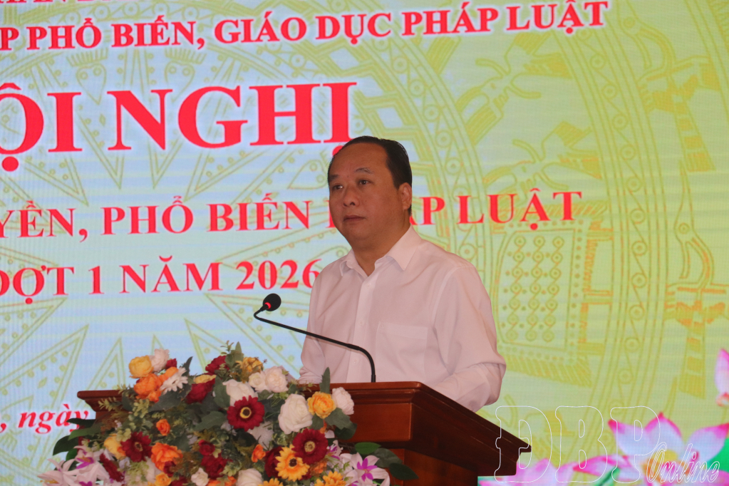 ĐBP - Ngày 9/4, Hội đồng Phối hợp phổ biến, giáo dục pháp luật tỉnh tổ chức hội nghị tuyên truyền, phổ biến pháp luật (đợt 1) năm 2026. Đồng chí Nguyễn Minh Phú, Phó Chủ tịch UBND tỉnh, Chủ tịch Hội đồng phối hợp phổ biến giáo dục pháp luật tỉnh dự và phát biểu chỉ đạo.