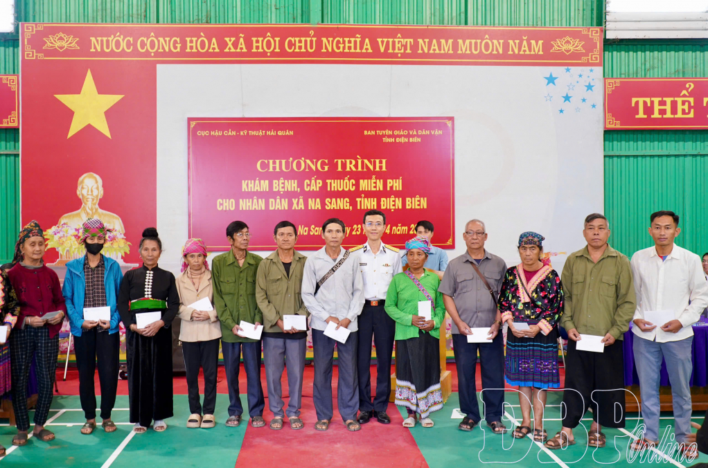 ĐBP - Ngày 23/4, Ban Tuyên giáo và Dân vận Tỉnh ủy phối hợp với Cục Hậu cần - Kỹ thuật Hải quân tổ chức chương trình khám bệnh, tư vấn sức khỏe, cấp phát thuốc miễn phí và tặng quà người dân xã Na Sang. Đây là một trong những nội dung thuộc kế hoạch phối hợp thực hiện công tác tuyên truyền biển đảo, biên giới năm 2026 tại tỉnh Điện Biên.
