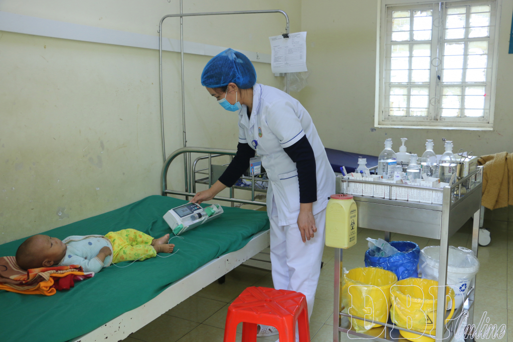 Bế con trên tay, chị Giàng Thị Gống, bản Huổi Chua, xã Na Sang chia sẻ: “Cháu mới 6 tháng tuổi, sốt cao, nổi mụn đỏ. Gia đình đưa đi khám thì bác sĩ kết luận bị sởi. Nhờ nhập viện kịp thời, sau một tuần điều trị cháu đã đỡ nhiều, không phải thở máy nữa”.