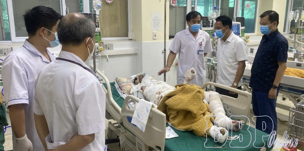 Trực tiếp có mặt tại Khoa Cấp cứu, Giám đốc Sở Y tế Phạm Giang Nam ân cần hỏi thăm tình hình sức khỏe của các bệnh nhân, chia sẻ và động viên các gia đình chăm sóc tốt cho người bệnh. Đồng thời chỉ đạo Bệnh viện Đa khoa tỉnh tập trung mọi điều kiện tốt nhất điều trị cho các bệnh nhân và trao số tiền hỗ trợ mỗi gia đình bệnh nhân 5 triệu đồng.