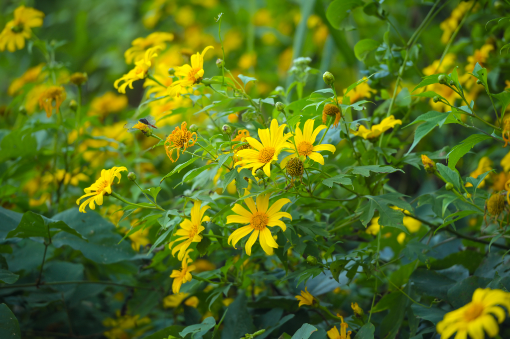 Không chỉ rực rỡ bên hồ Nậm Khẩu Hu, hoa dã quỳ hiện diện trên khắp các cung đường của Điện Biên, khiến mùa đông nơi đây ngập tràn sức sống. Trên Quốc lộ 279, đoạn từ phường Điện Biên Phủ về xã Mường Ảng, những vạt dã quỳ bạt ngàn nở vàng hai bên đường. Dưới ánh nắng buổi sớm, từng cánh hoa rung rinh theo gió, như những đốm lửa nhỏ sưởi ấm cả vùng núi. Cung đường Mường Ảng mùa này trở thành địa điểm check-in lý tưởng cho những ai yêu thích cảm giác phóng xe giữa đại ngàn rực rỡ.
