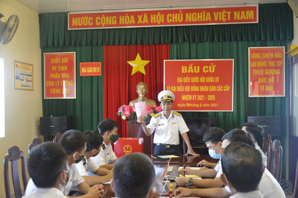 Với tinh thần trách nhiệm cao nhất trước Đảng, Nhà nước và Nhân dân, Bộ Tư lệnh Vùng 2 Hải quân đã thành lập Tổ bầu cử sớm trên biển; tổ chức cho 2 tàu Trường Sa 04 và Trường Sa 19 (Lữ đoàn 125) thực hiện hải trình gần 2.000 hải lý, tiến hành bầu cử tại bến và trên 15 nhà giàn DK1, 10 tàu đang làm nhiệm vụ trên thềm lục địa phía Nam của Tổ quốc, với hàng nghìn cử tri, bảo đảm dân chủ, đúng luật, chặt chẽ, an toàn tuyệt đối.