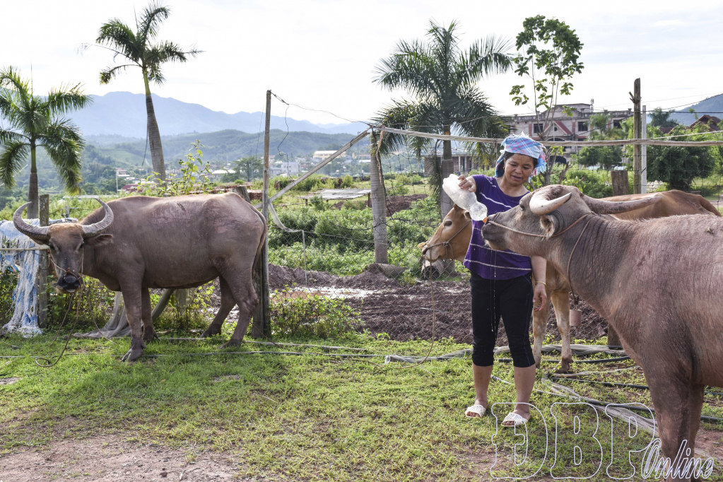 Nhờ chịu khó học hỏi, chăm sóc đúng kỹ thuật, sau vài năm, cặp trâu của gia đình chị Hoàn sinh sản tốt. Có thêm nguồn thu ổn định, chị mạnh dạn mở rộng chăn nuôi, đầu tư thêm chuồng trại để nuôi lợn và dê, tận dụng phụ phẩm nông nghiệp làm thức ăn. Mỗi năm, trừ chi phí, gia đình chị thu nhập trên 150 triệu đồng. Đến nay, chị Hoàn không những thoát nghèo mà trở thành hộ khá trong bản, có điều kiện cho con học hành đầy đủ, sửa sang lại nhà cửa khang trang hơn.