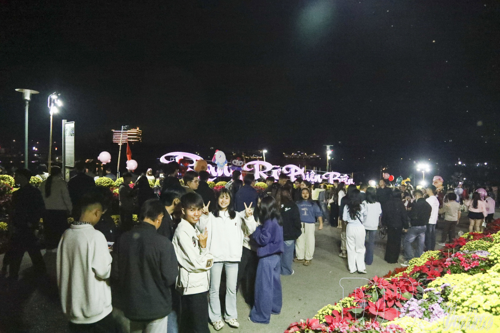 Tại khu vực cầu Mường Thanh, nơi được xem là tâm điểm của đêm giao thừa với màn bắn pháo hoa, niềm vui của người dân càng thể hiện rõ nét. Từng dòng người kiên nhẫn chờ đợi, ánh mắt hướng về bầu trời đêm với sự háo hức khó giấu. Trong khoảnh khắc ấy, thời gian dường như chậm lại, nhường chỗ cho sự mong đợi và cảm xúc dâng trào.