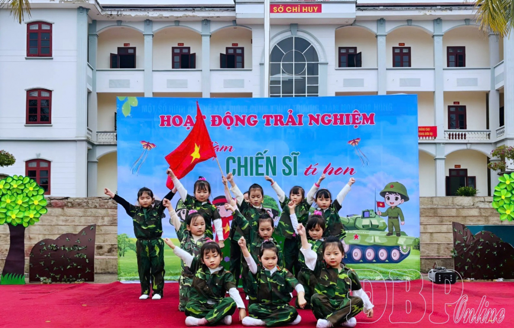 Các em cũng được trực tiếp trải nghiệm môi trường sinh hoạt của người lính, hóa thân thành những “chiến sĩ nhí” với các vật dụng ngụy trang được hoạt động theo nhóm, rèn luyện tinh thần đoàn kết, sự mạnh dạn và tính kỷ luật. Không khí chương trình diễn ra sôi nổi, gần gũi, tạo niềm vui, sự hứng thú cho trẻ.