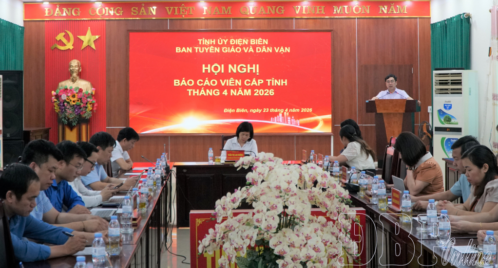 ĐBP - Sáng nay (23/4), Ban Tuyên giáo và Dân vận Tỉnh ủy tổ chức hội nghị báo cáo viên cấp tỉnh tháng 4/2026. Hội nghị tổ chức theo hình thức trực tiếp kết hợp trực tuyến tới 30 điểm cầu sở, ngành, đơn vị, xã, phường với 1.293 đại biểu tham dự.