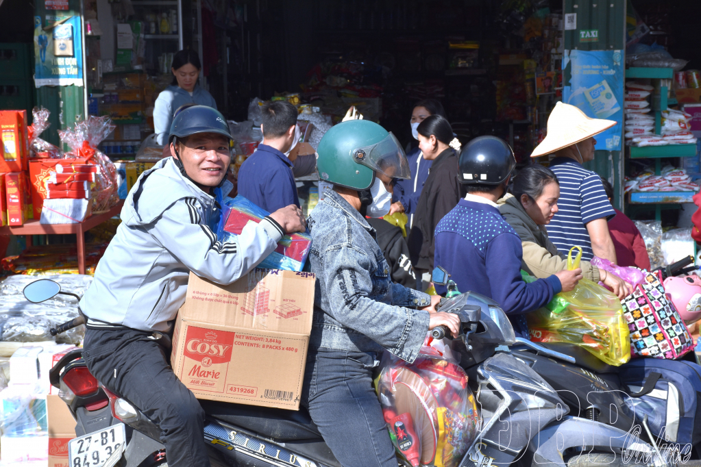 Tại các chợ, khu vực bán hàng thực phẩm như: Rau xanh, thịt lợn, thịt gà, cá, giò chả, trứng… luôn trong tình trạng đông khách, nhiều tiểu thương phải bổ sung hàng liên tục trong ngày để đáp ứng nhu cầu tăng cao. Các gian hàng quần áo, đồ gia dụng, đồ trang trí tết cũng thu hút đông đảo người dân đến mua sắm, tạo không gian rực rỡ những ngày giáp tết.
