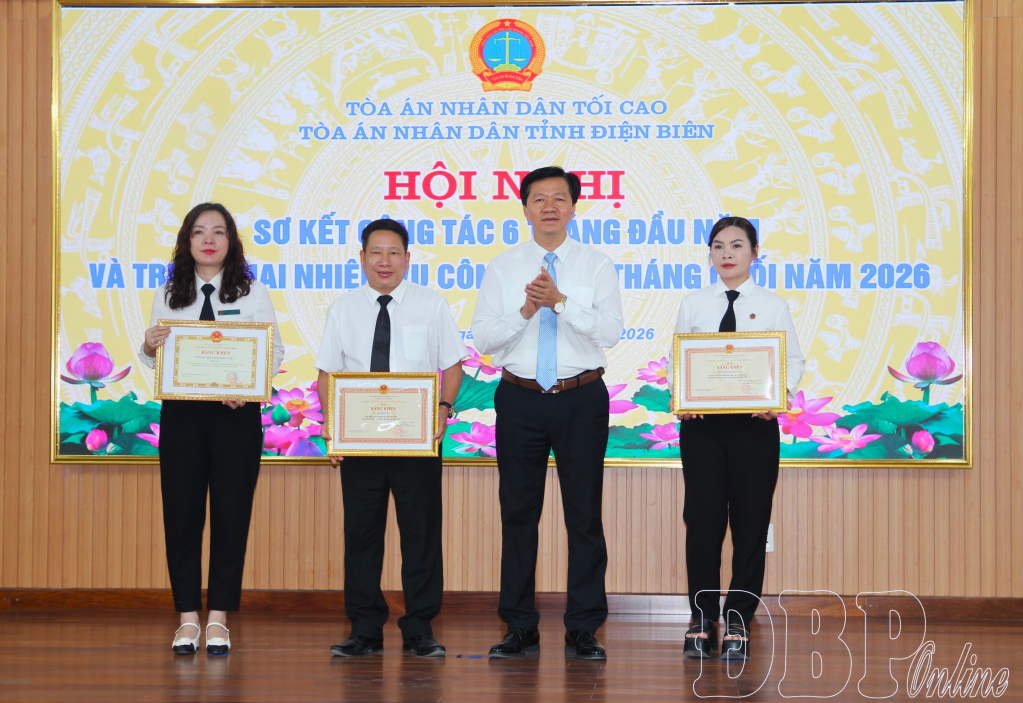 Nhân dịp này, Tòa án nhân dân tỉnh tặng Giấy khen 3 tập thể, 21 cá nhân có thành tích nổi bật trong phong trào thi đua 6 tháng đầu năm 2026.