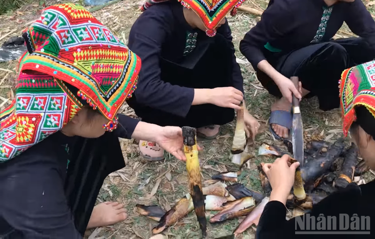 Sau khi lo xong phần thịt, người Thái ở Tây Bắc chuẩn bị lá dong, gạo nếp, đậu xanh, để gói bánh chưng. Bánh chưng người Thái là bánh chưng gù, có hình dạng dài, hơi gồ lên phần thân bánh. Việc gói bánh thường do phụ nữ đảm nhiệm, bánh sau khi gói được cho vào nồi lớn đun liên tục trên bếp củi. Trong những ngày giáp Tết, phụ nữ và trẻ em thường thay nhau trông bếp, giữ lửa cho bánh chín đều.