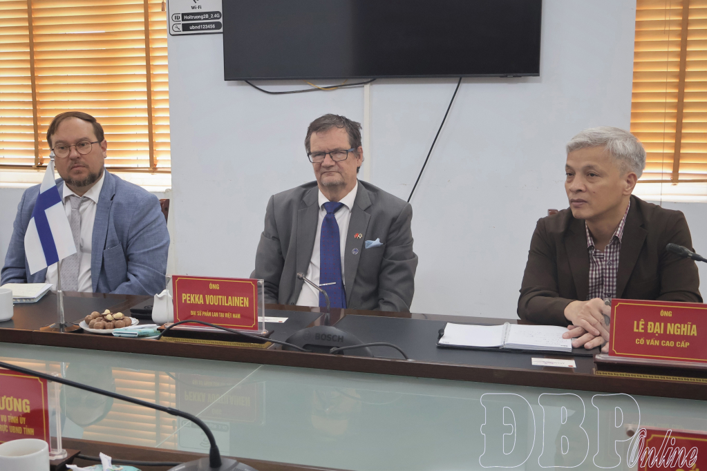 ĐBP - Sáng ngày 10/4, Phó Chủ tịch Thường trực UBND tỉnh Lò Văn Cương có buổi làm việc với Đoàn công tác Đại sứ quán Phần Lan tại Việt Nam do ông Pekka Voutilainen, Đại sứ đặc mệnh toàn quyền nước Cộng hòa Phần Lan tại Việt Nam làm Trưởng đoàn.