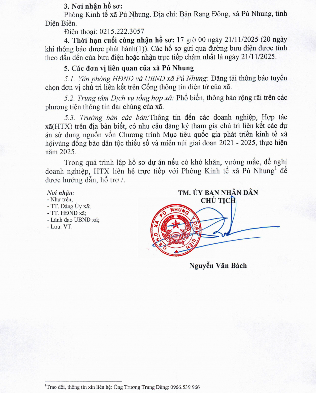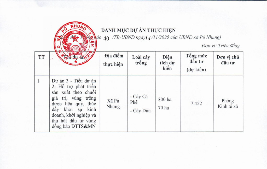 ĐBP - UBND xã Pú Nhung thông báo về việc tuyển chọn đơn vị chủ trì liên kết các dự án hỗ trợ phát triển sản xuất liên kết theo chuỗi giá trị thuộc Chương trình Mục tiêu quốc gia phát triển kinh tế xã hội vùng đồng bào dân tộc thiểu số và miền núi giai đoạn 2021-2025, nguồn vốn năm 2025.
