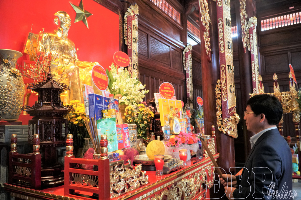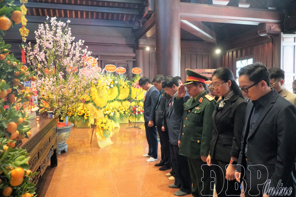 Dâng hương Đền thờ Liệt sĩ tại Chiến trường Điện Biên Phủ, đoàn đại biểu trân trọng đặt vòng hoa, thành kính bày tỏ lòng biết ơn, tưởng nhớ Đại tướng Võ Nguyên Giáp cùng cán bộ, chiến sĩ, thanh niên xung phong, dân công hỏa tuyến; quân và dân đã anh dũng chiến đấu, hy sinh làm nên Chiến thắng Điện Biên Phủ. Đoàn đại biểu kính mong Đại tướng Võ Nguyên Giáp và các Anh hùng liệt sĩ phù hộ độ trì cho quốc thái, dân an, đất nước Việt Nam trường tồn, giàu mạnh; nhân dân Việt Nam luôn bình an, hạnh phúc.