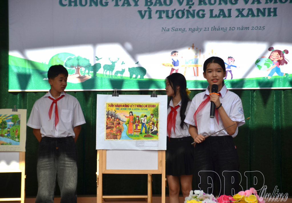 Tiếp nối thành công từ các cuộc thi vẽ tranh hai năm qua, vừa qua, Quỹ Bảo vệ và Phát triển rừng phối hợp với UBND xã Na Sang cùng các trường THCS trên địa bàn tổ chức Cuộc thi vẽ tranh với chủ đề “Chung tay bảo vệ rừng và môi trường vì tương lai xanh”. Cuộc thi thu hút đông đảo học sinh từ lớp 6 đến lớp 9 của 4 trường: THCS số 1 Na Sang, PTDTBT THCS Na Sang, PTDTBT THCS Ma Thì Hồ và PTDTBT THCS Sa Lông tham gia. Thông qua những bức tranh vẽ tay trên khổ giấy A3, các em thể hiện khả năng sáng tạo, gửi gắm thông điệp ý nghĩa về vai trò của rừng trong bảo vệ môi trường, ứng phó biến đổi khí hậu và kêu gọi mọi người chung tay thực hiện các hành động thiết thực vì một hành tinh xanh.
